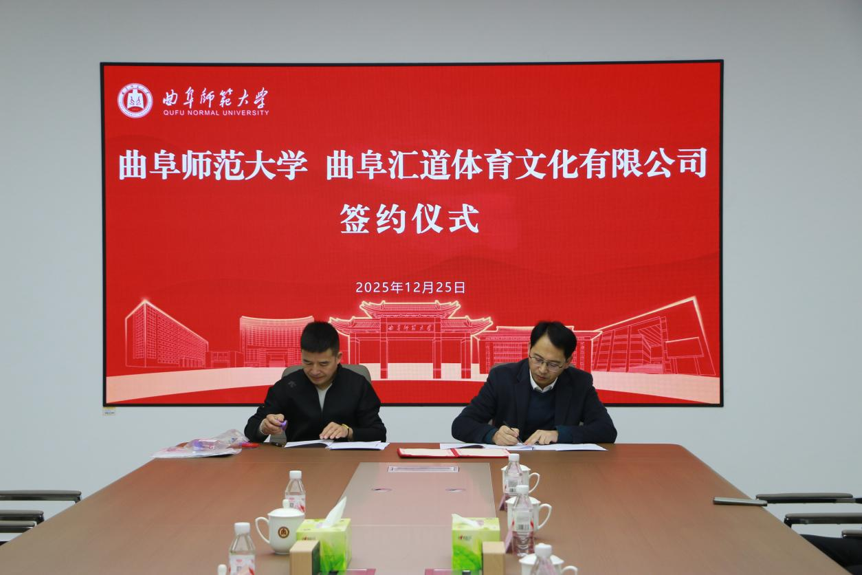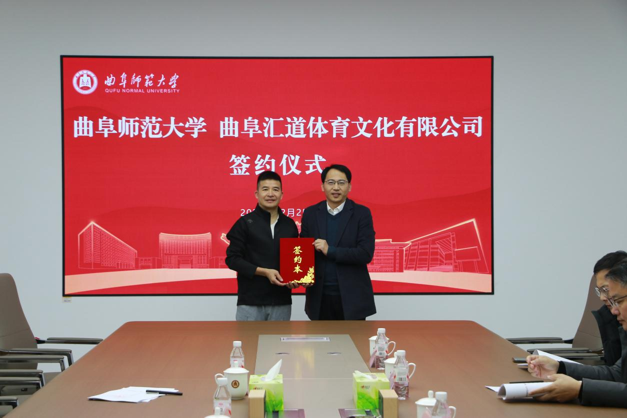 与曲阜汇道体育文化有限公司签约仪式在校科技楼二楼会议室举行。疯av