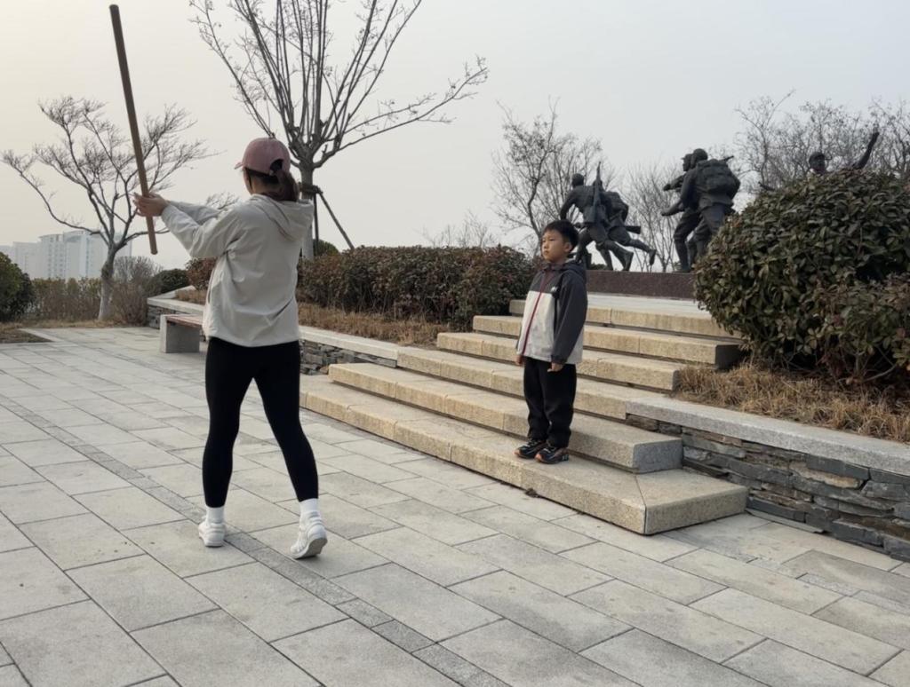 活动中,实践队队员结合专业特长,耐心讲解武术棍术的基本动作、发力要领与礼仪规范,通过示范、分解教学、分组指导等方式,带领青少年逐一学习握棍、挥棍、劈棍、架棍等基础招式。队员们手把手纠正动作、鼓励参与,现场氛围轻松热烈,青少年在练习中感受传统体育的魅力,展现出积极向上的精神风貌。