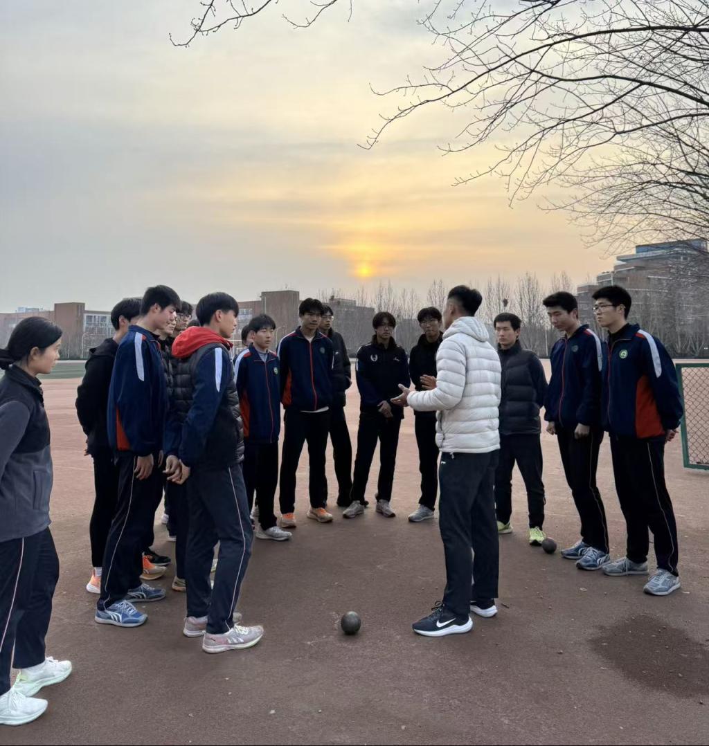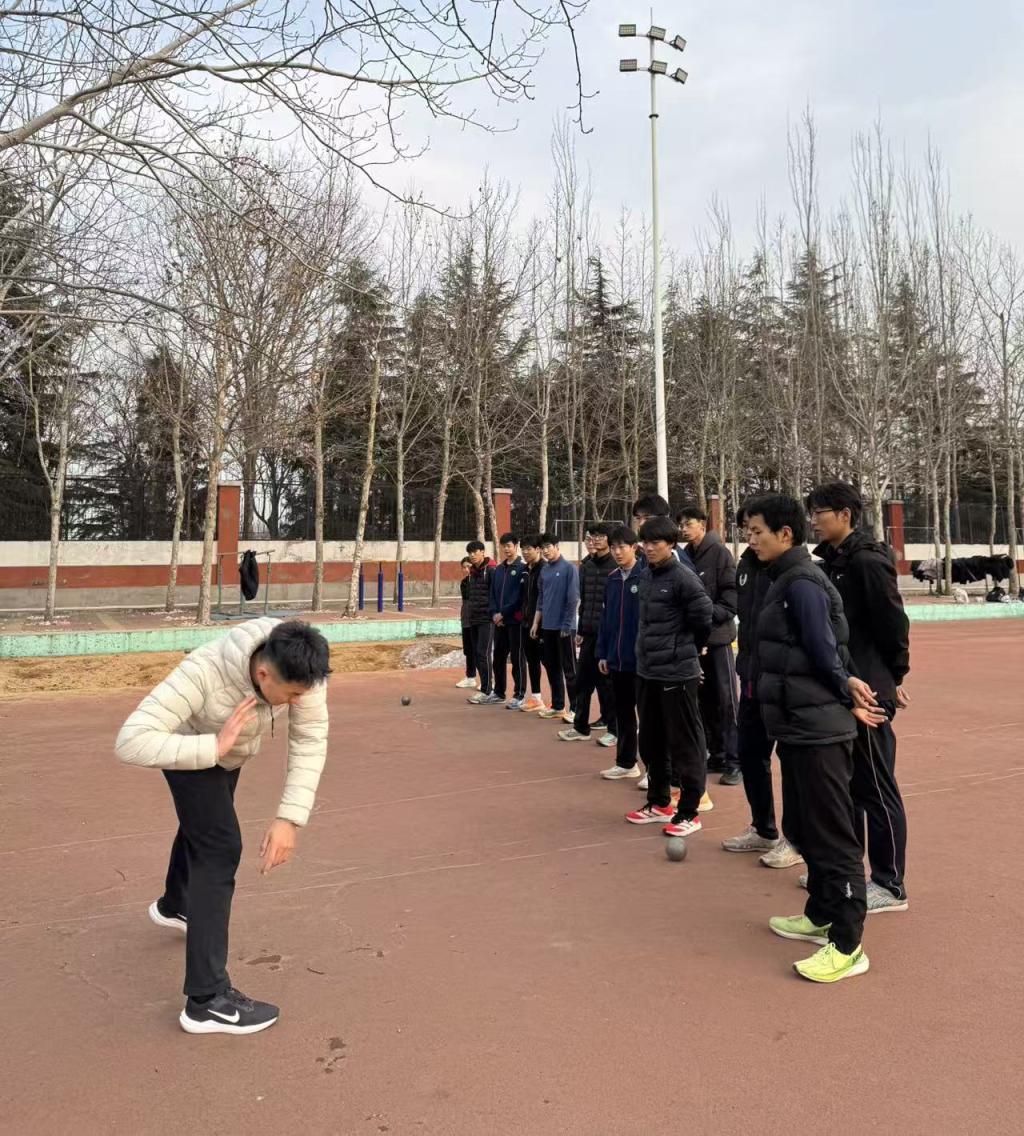 冬日的操场虽带着料峭寒意,却丝毫没有阻挡队员们和学弟学妹们的热情。实践队队员结合自身专业所学,围绕铅球等项目进行了细致讲解与示范。从铅球握球、持球的基础动作,到滑步、转体、蹬地、推球的完整发力链条,队员们逐一拆解技术要点,还针对动作细节反复演示,让学弟学妹们清晰感知发力节奏与身体控制的关键。