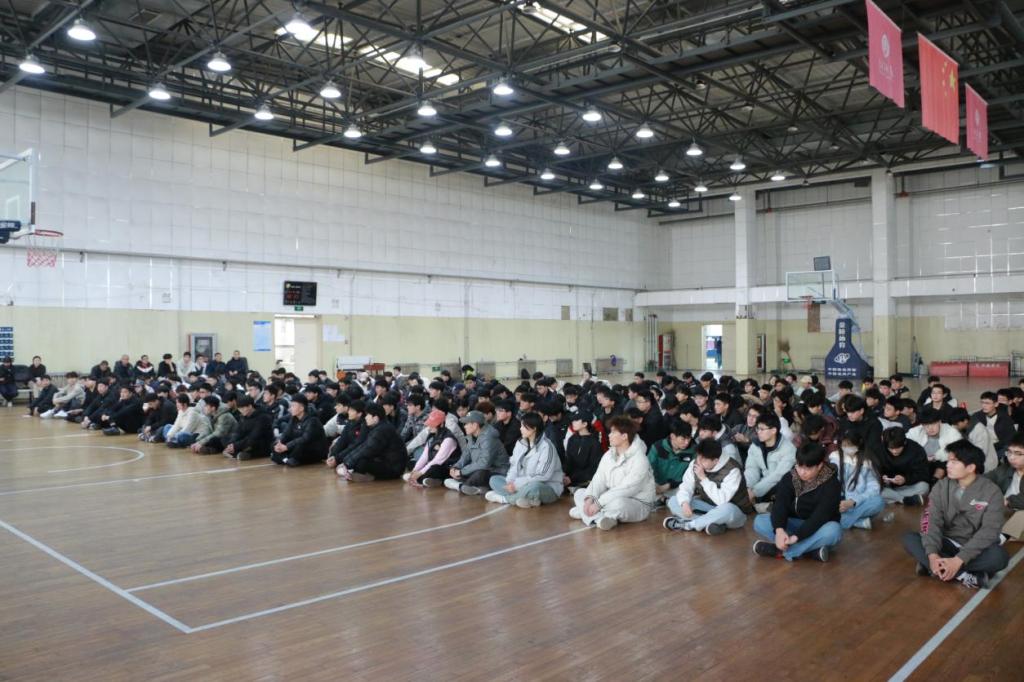 副院长兼体育教学部副主任伊超,教务员王旭,2023级辅导员周晗、袁瑞霖,学院实习指导老师及2023级集中实习学生参加活动。