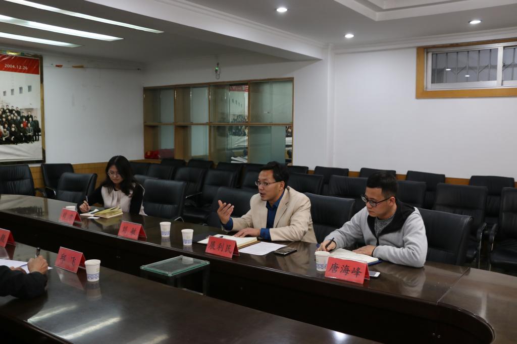交流会伊始,刘敏首先致欢迎词,介绍了我院的发展历程和学院近几年取得的成果。随后,邱飞介绍了此次调研活动的目的和调研内容,并就目前岭南师范学院在学生党建、育人、工作品牌开展情况进行了介绍。紧接着,展利民分享了学院党建与业务融合、“三全育人”工作机制、学生工作品牌建设的经验。刘京、唐海峰就学团工作遇到的问题与莫毅进行了深入探讨。最后,刘敏详细介绍了学院未来的发展目标。