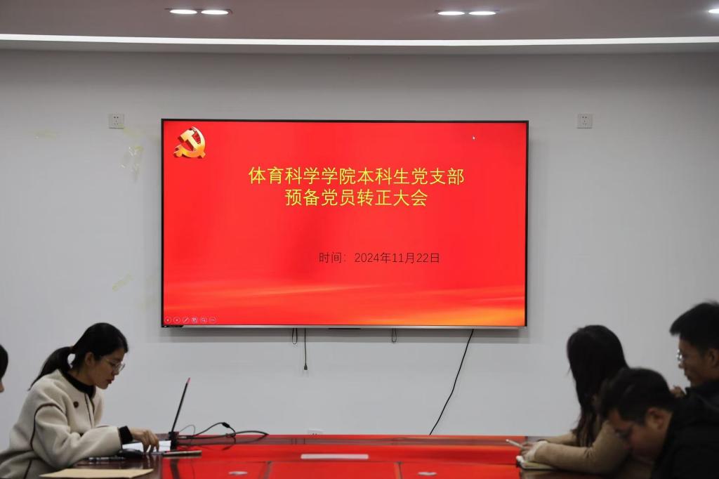 本科生党支部于一楼会议室召开预备党员转正会议。会议讨论、表决关于杜鹏辉、张蔓等同志是否接收为正式党员的议题。发展党员工作是加强党的建设的一项重要任务。本次会议由疯av