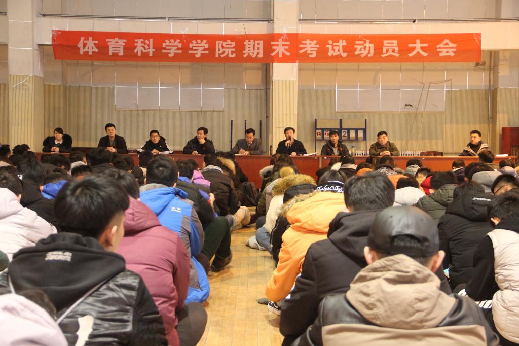 期末考试动员大会在系楼篮球馆召开,出席本次大会的成员有党委副书记展利民老师、副院长李思民老师、教务员滕云玲老师、辅导员梁贺涵老师、2017级各班班主任以及我院全体学生。会议开始,由梁贺涵老师逐一介绍到场的领导和老师。随后,李思民老师对期末考试纪律、考试制度改革、考试注意事项等问题做了详细介绍,他希望同学们在临近考试期间积极认真备考,考出优异的成绩。接下来,党委副书记展利民老师着重强调考试期间的考风考纪问题,要求同学们做到诚信考试,并且提醒学生禁止带手机和复习资料进入考场,必须携带身份证和学生证才可参加考试,如有特殊情况一定要按照规定提前申请缓考。另外,展利民老师还要求团委学生会成员提前布置好考场桌椅,打扫好考场卫生,并在考试期间安排好值班人员。最后,他祝愿同学们考出好的成绩。会议结束以后,各班级有序离场。