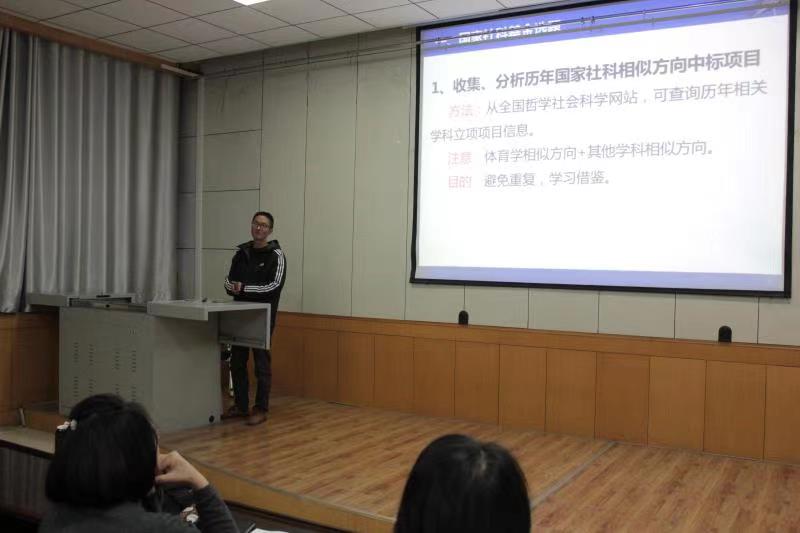 郭学松副教授结合自身申报国家社科项目的实际情况的特点从课题选题、本子论证、研究基础和注意事项等四个方面做了详细的讲解和经验分享,他向老师们强调了申报选题的重要性,建议老师们在申报的时候根据选题指南和大背景确定选题。